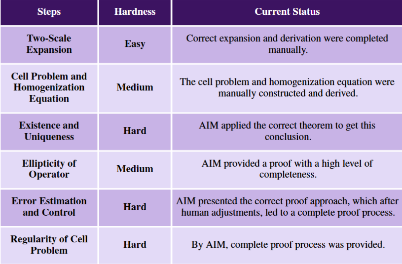 在“Regularity of Cell Problem”这一子问题的证明过程中,人类专家明确引入了来自Schauder Theory的辅助引理,并将这些引理作为提示信息提供给AIM(图3)。通过这种方式,人类专家引导 AIM 在推导后续结论时运用这些引理,从而有效构建并约束其推理过程,使其朝着得出有效且完整的论证方向推进。