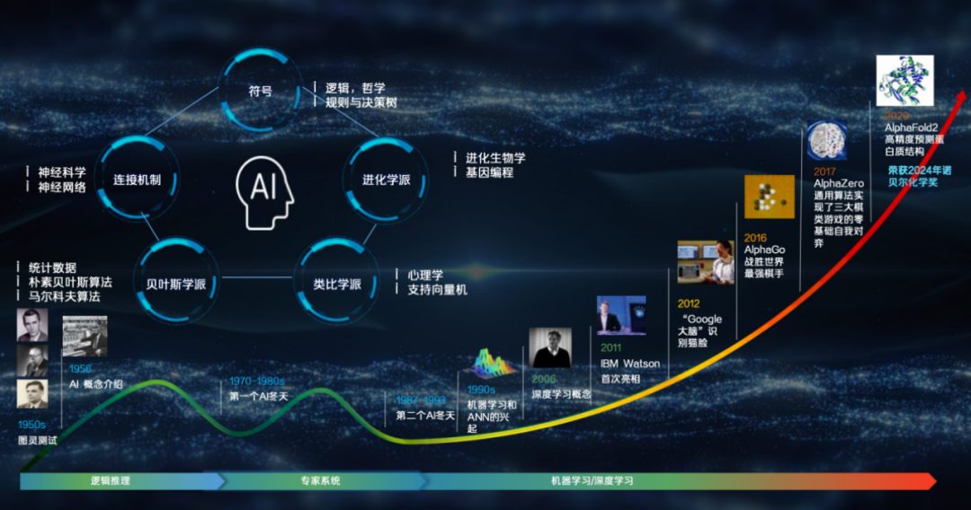 什么是人工智能?人工智能,本质上是学习人类智能的过程,多年来我们一直在探寻智能的本质。“人工智能”(Artificial Intelligence)这一概念于 1956 年正式定义,而它的理论奠基可追溯到更早——图灵率先定义了 “计算” 与 “智能”,并提出了 “图灵测试”:若机器能通过多轮对话,让人类无法分辨其是否为人类,就意味着通过了测试。