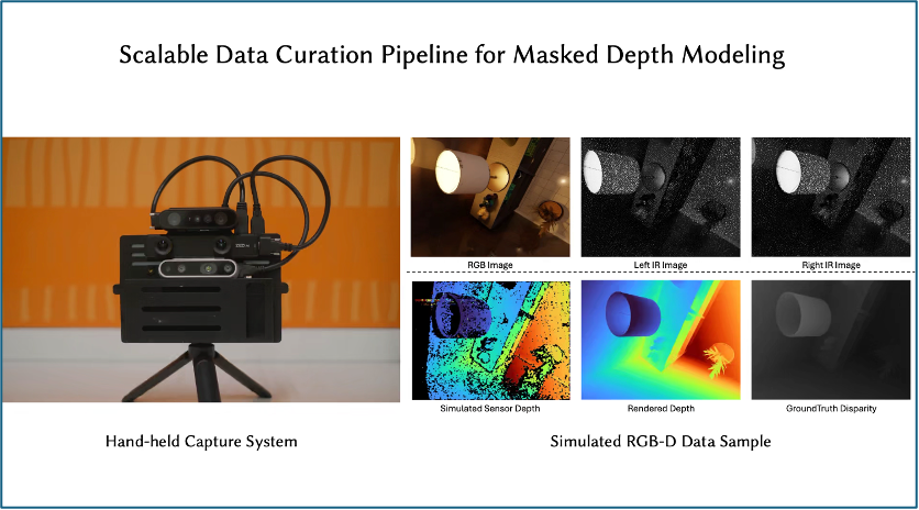 为此,徐英豪博士提出将sensor depth视为对原始depth进行mask modeling的思路,他认为这本质上与MAE训练类似,因为ZED depth本身就包含不连续区域,类似于加了mask的gt depth。他建议利用大规模MAE的方法来学习general depth,进而完成depth补全任务。