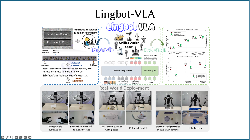 Lingbot-VLA被认为是国内首个系统化进行了Pretraining的VLA项目,解决了在工程实施中遇到的诸多挑战。