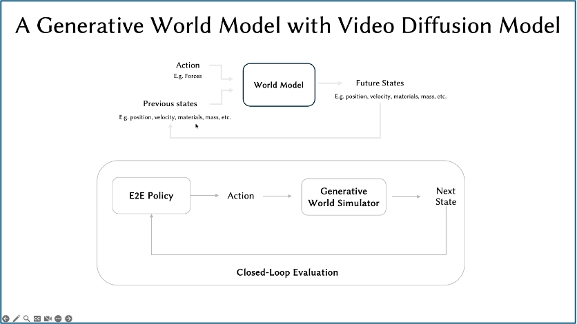 另外,徐博士还强调了数据对模型性能的关键作用,他指出当前研究趋势已从结构优化转向数据驱动的性能证明。他提到通过自建数据pipeline和仿真技术来弥补真实数据不足,例如通过上图中的Scalable Data Curation Pipeline来为模型训练提供重要的复杂场景仿真数据。