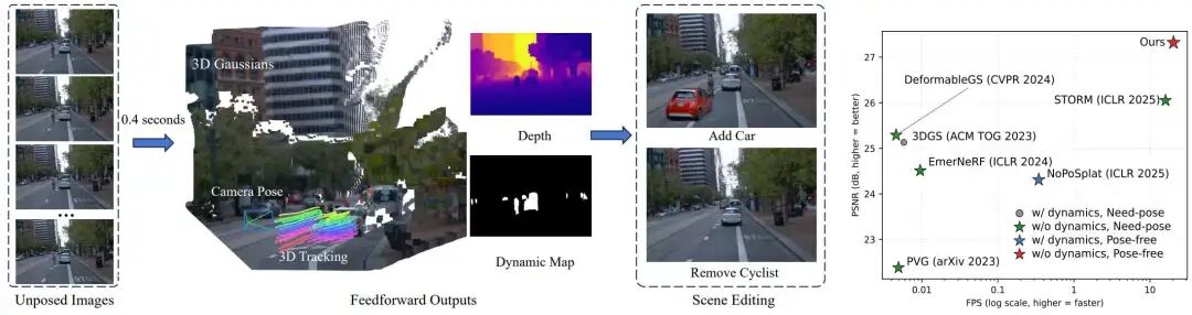 清华大学智能产业研究院(AIR)青年教师赵昊课题组联合小米汽车等单位,推出了首个面向大型动态驾驶场景的无姿态(pose-free) 前馈三维重建框架——DGGT(Driving Gaussian Grounded Transformer)。该方法摆脱了传统依赖逐场景优化、相机标定以及短帧窗口的限制,能够直接从稀疏、无标定图像中重建长序列三维场景,使自动驾驶仿真迈向高速、可扩展的新阶段。近年来,多模态大模型(MLLMs)发展迅猛,从看图说话到视频理解,...